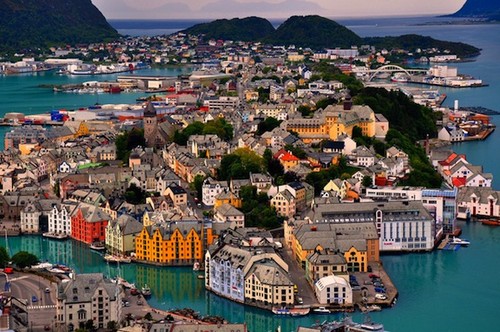 Norway Alesund Birdseye of City